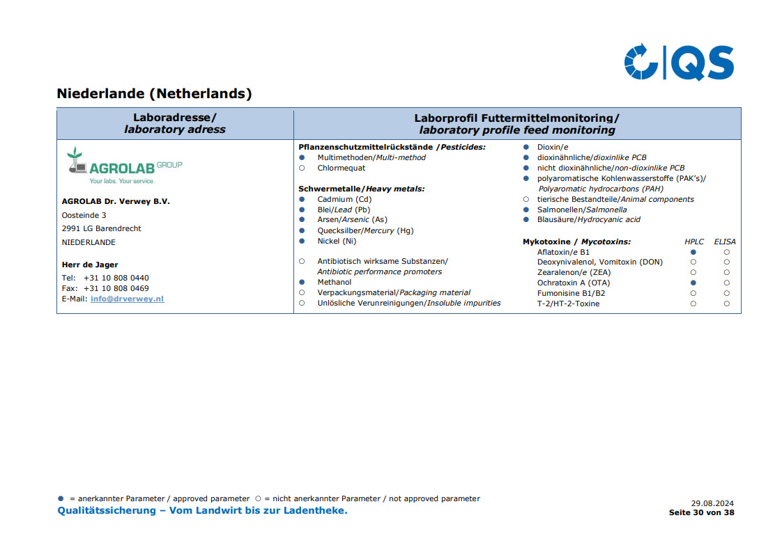 AGROLAB Dr. Verwey B.V.: QS recognition feed monitoring - Scope